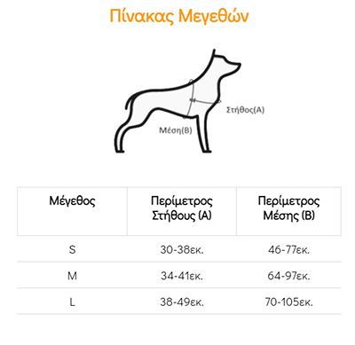 - Μετρήστε την Περίμετρο του Στήθους (Α) του σκύλου σας όπως φαίνεται στη φωτογραφία