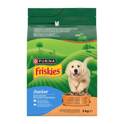 Friskies Dog Junior Κοτόπουλο, Γάλα & Λαχανικά 3kg
