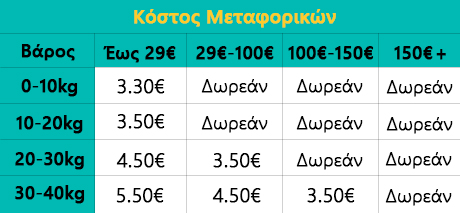 Δωρεάν Μεταφορικά: Άνω των 29€ και έως 20kg