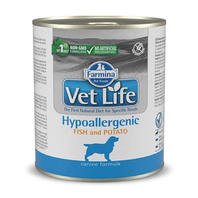 Πλήρης κλινική υποαλλεργική υγρή τροφή, χωρίς σιτηρά, με ψάρι (σαρδέλα, πέστροφα) και πατάτα, σε πατέ, για ενήλικους και ηλικιωμένους σκύλους με τροφικές δυσανεξίες . Είναι σχεδιασμένη για την μείωση της συχνότητας εμφάνισης των ανεπιθύμητων αντιδράσεων στα τρόφιμα.